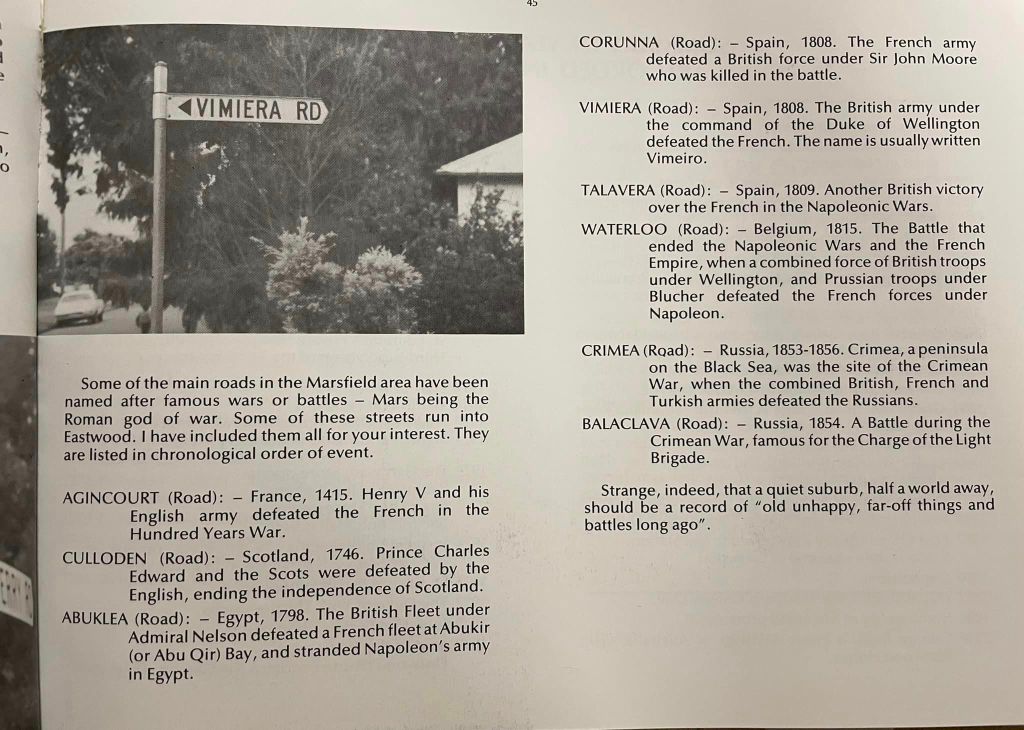 A retrospective tip for Arthur Phillip. Maybe don’t go naming land grants after the Roman God of War if you want the colony’s descendants to believe the rubbery ambiguity around peaceful dispossession. What also doesn’t help was this habit of the ‘soldier-settlers’ naming every second road in the Field of Mars after British-European and colonial military victories.